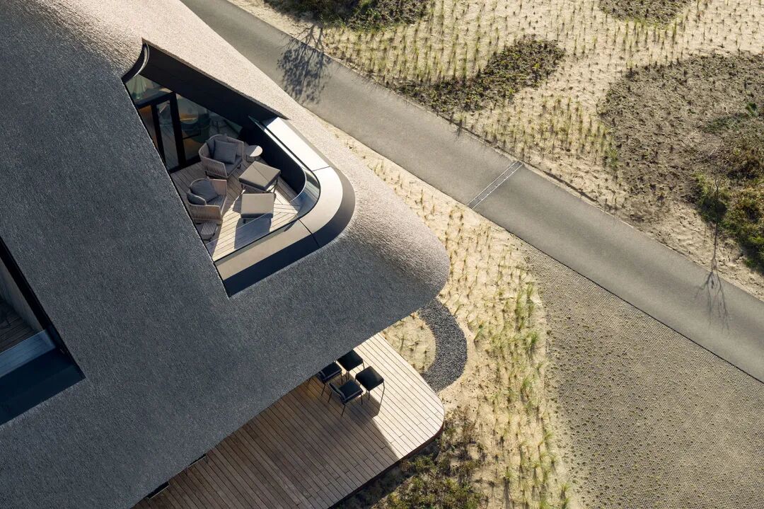 32间客房中,每间都配有带遮挡的室外区域,凉棚设置在屋檐之下,让住客在沙丘与森林的怀抱中静思。