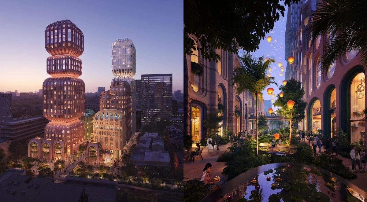 英国Heatherwick Studio在曼谷Silom区打造泰国首个项目“Hatai”,以传统灯笼为设计灵感,将两座酒店塔楼融入城市肌理。