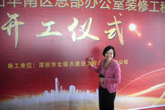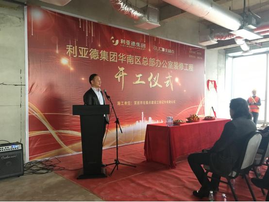 令人惊喜的是,深圳湾科技生态园物业服务中心项目总监卢传凤女士也来到了现场,她表达了对本次项目的重视。在致辞中她提到,利亚德集团华南区总部办公室装修工程对于科技生态园是一个很重要的项目,在这里,她对北极点的工作给予了极大的鼓励和支持,她代表深圳湾科技生态园物业部向本项目致以最真诚的祝愿,祝工程顺利,开工大吉!