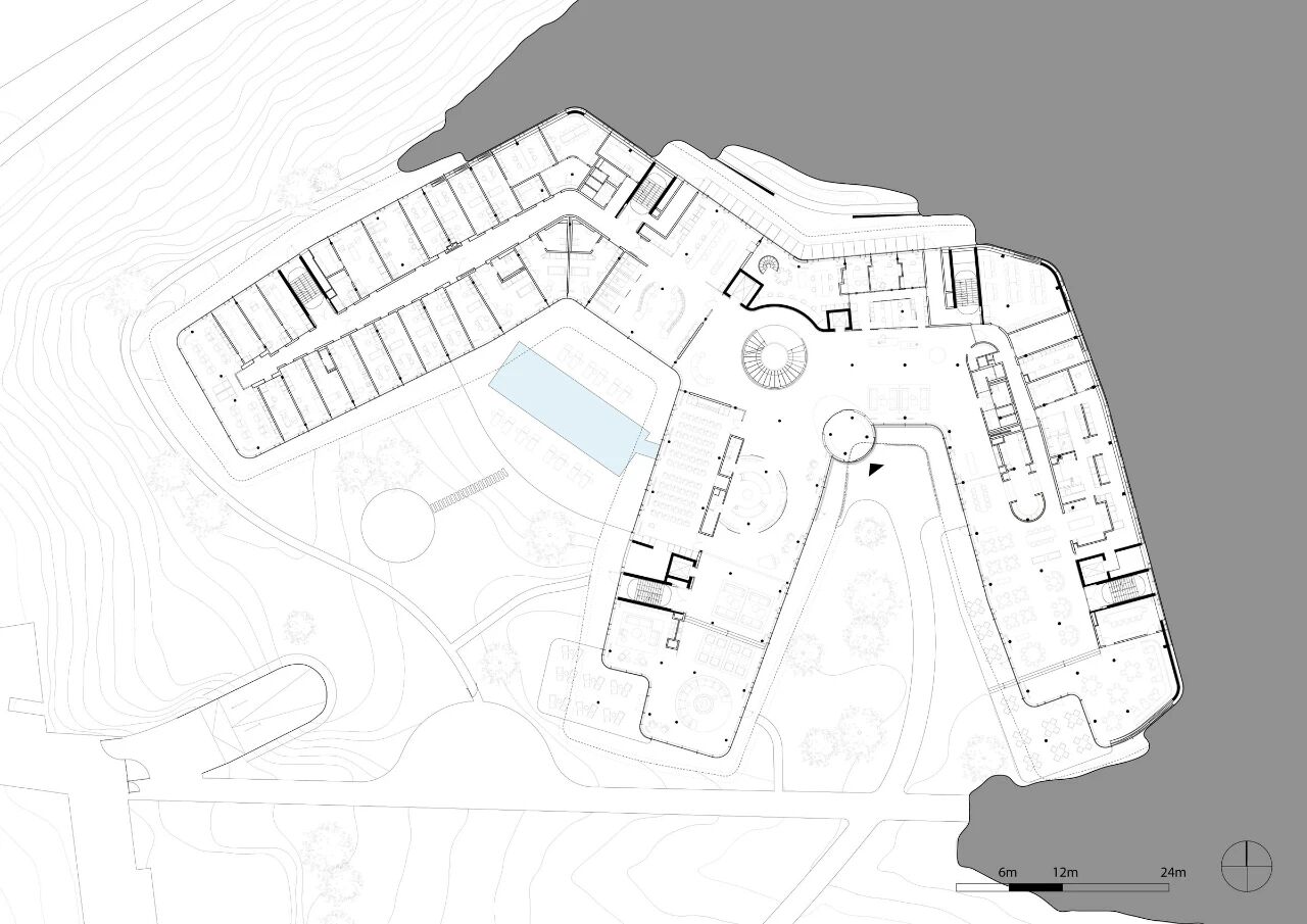 选址曾为20世纪30年代军事区域,建筑群巧妙融合场地历史,赋予疗愈空间更深层的精神内涵。