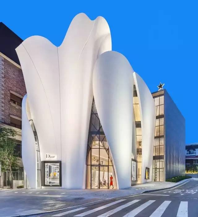 在首尔江南区一个角落里,显著的矗立着一栋法国时尚品牌迪奥的新精品店。它于设计师christian de portzamparc设计,petermarino进行内部装饰,体现着这款奢侈品牌持久不衰的馈赠和其对于时尚界的影响力。法国建筑师将建筑设计为六层,被白色巨大的像花瓣一样的面板所围绕,几乎就像是参考迪奥本身设计的花瓣一样。